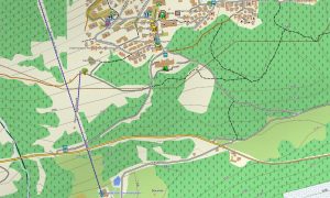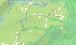 Natural features such as forests, meadows, and mountain terrain clearly displayed