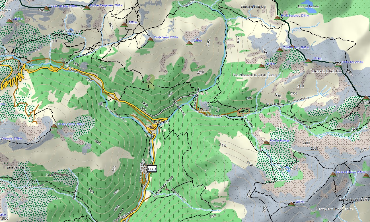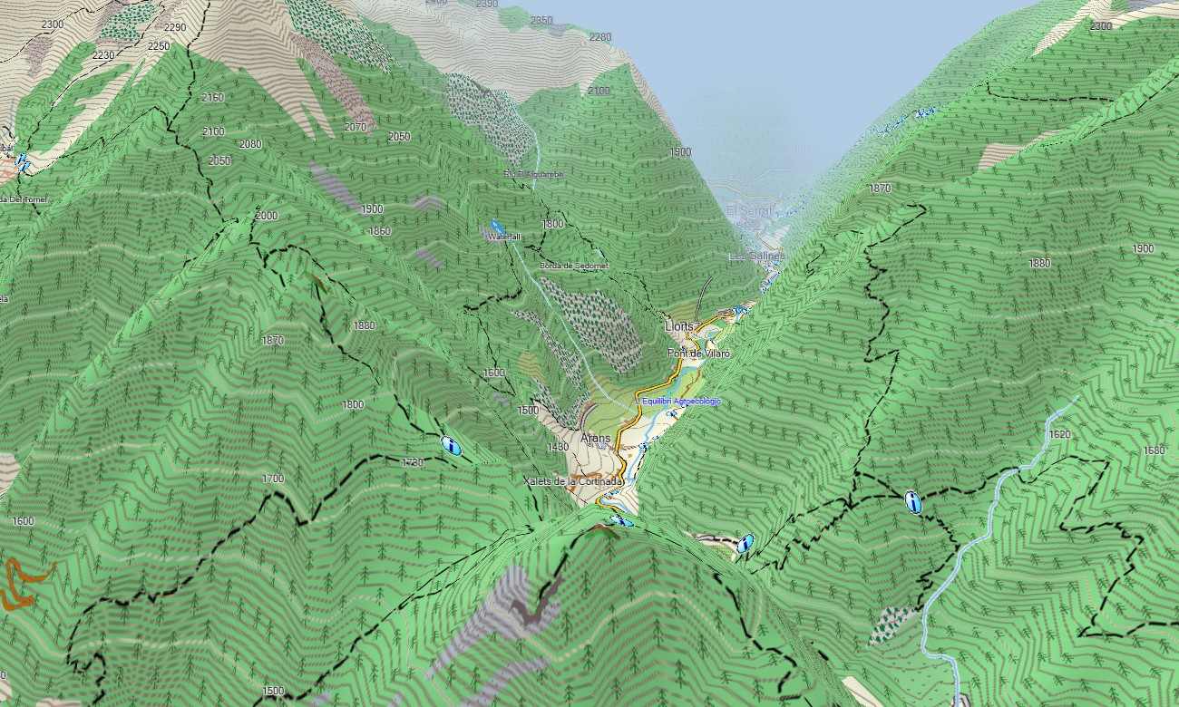 Topographic Garmin map of Andorra with trails, rivers, springs, and elevation contours